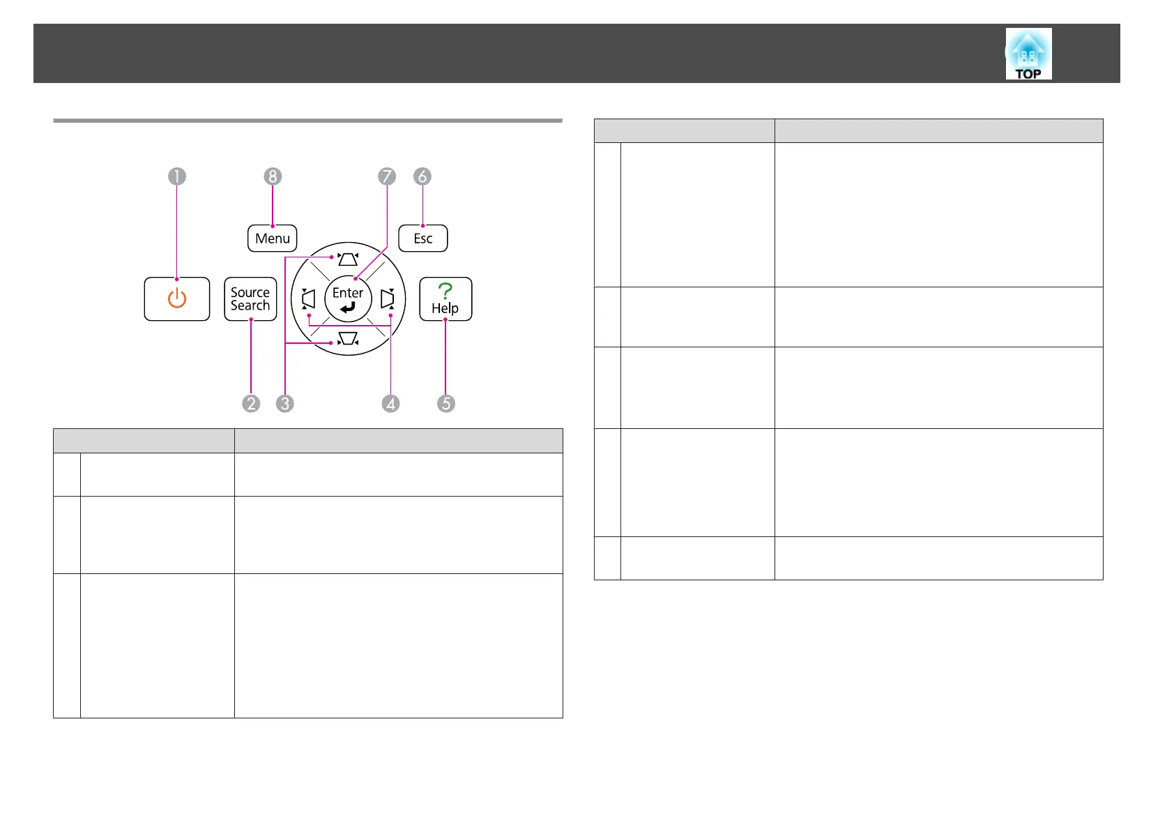 Turns the projector power on or off.