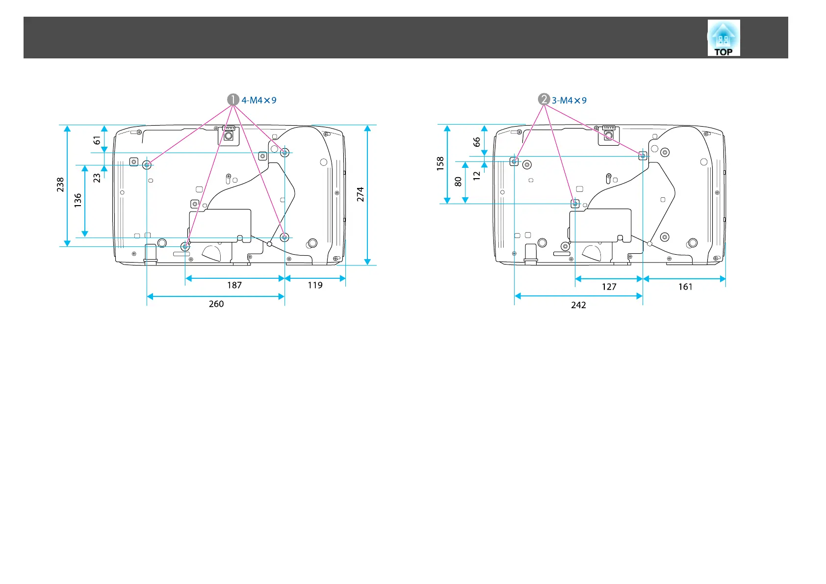 Ceiling mount fixing points for ELPMB22