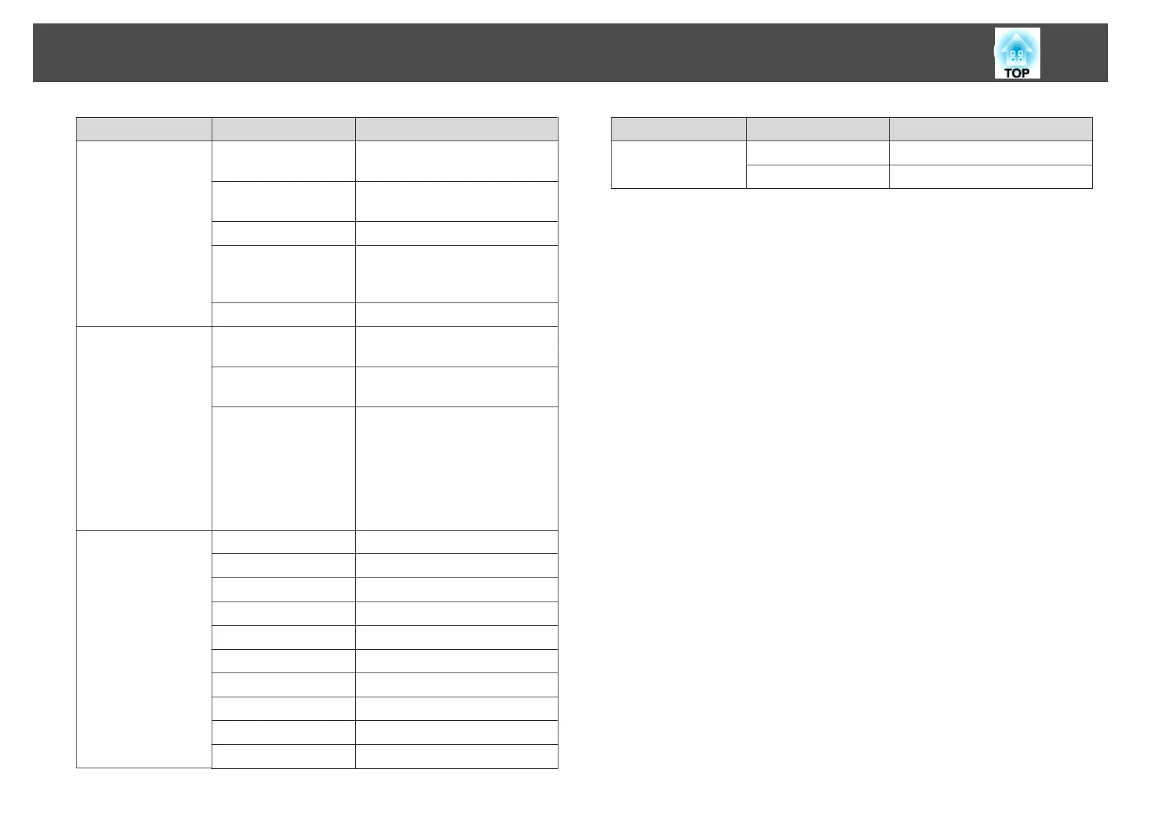 Top Menu Name Submenu Name Setting Values
