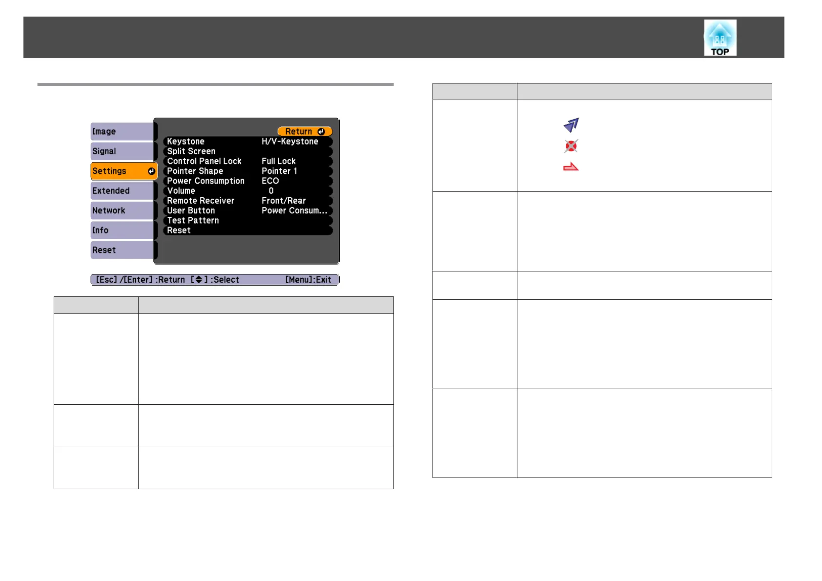 • When H/V-Keystone is selected:
