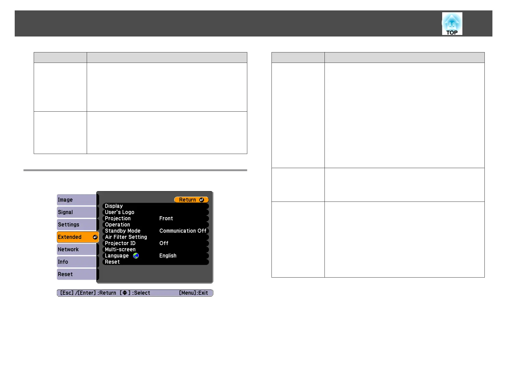 You can make settings related to the projector's display.