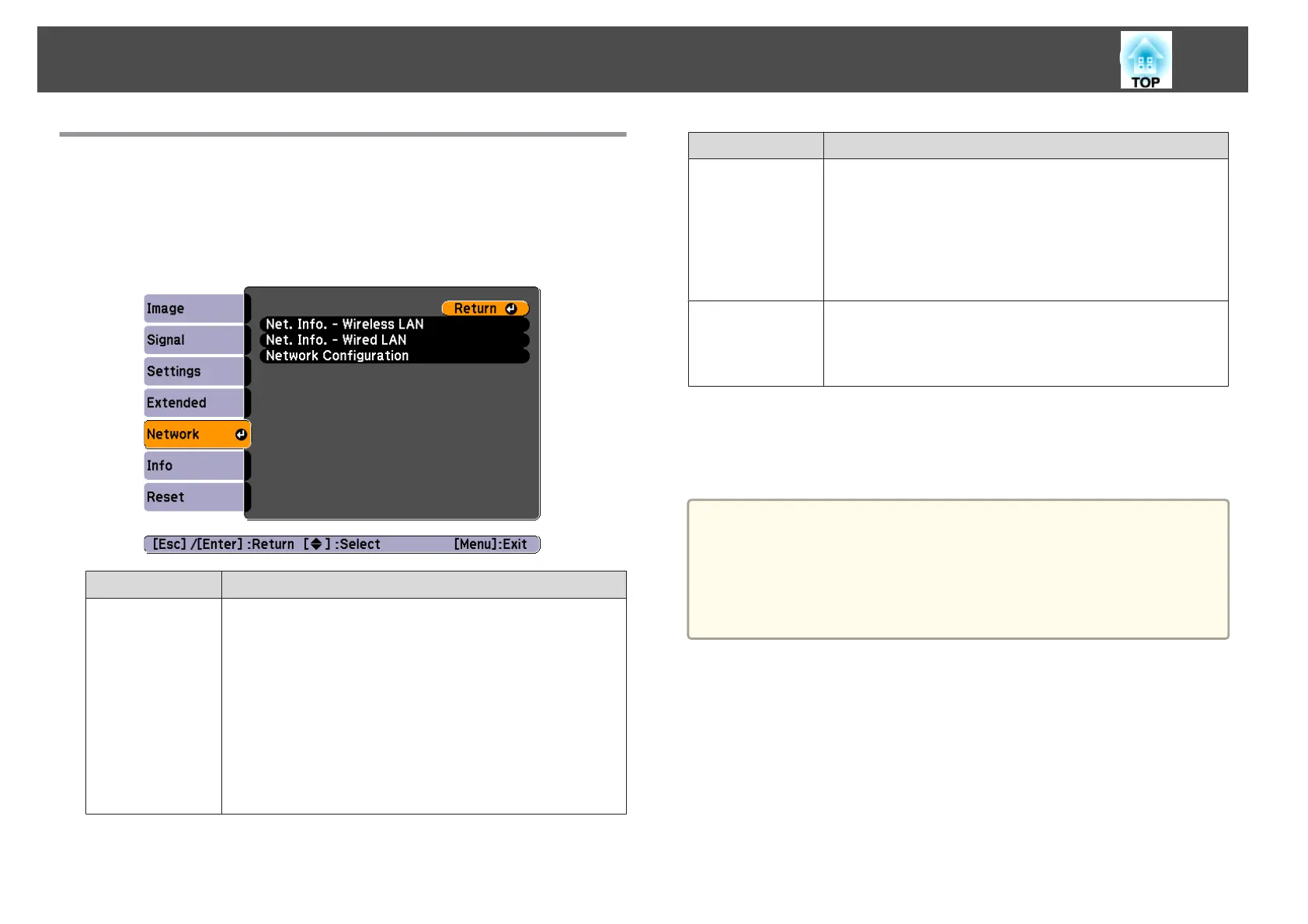 Notes on operating the Network menu