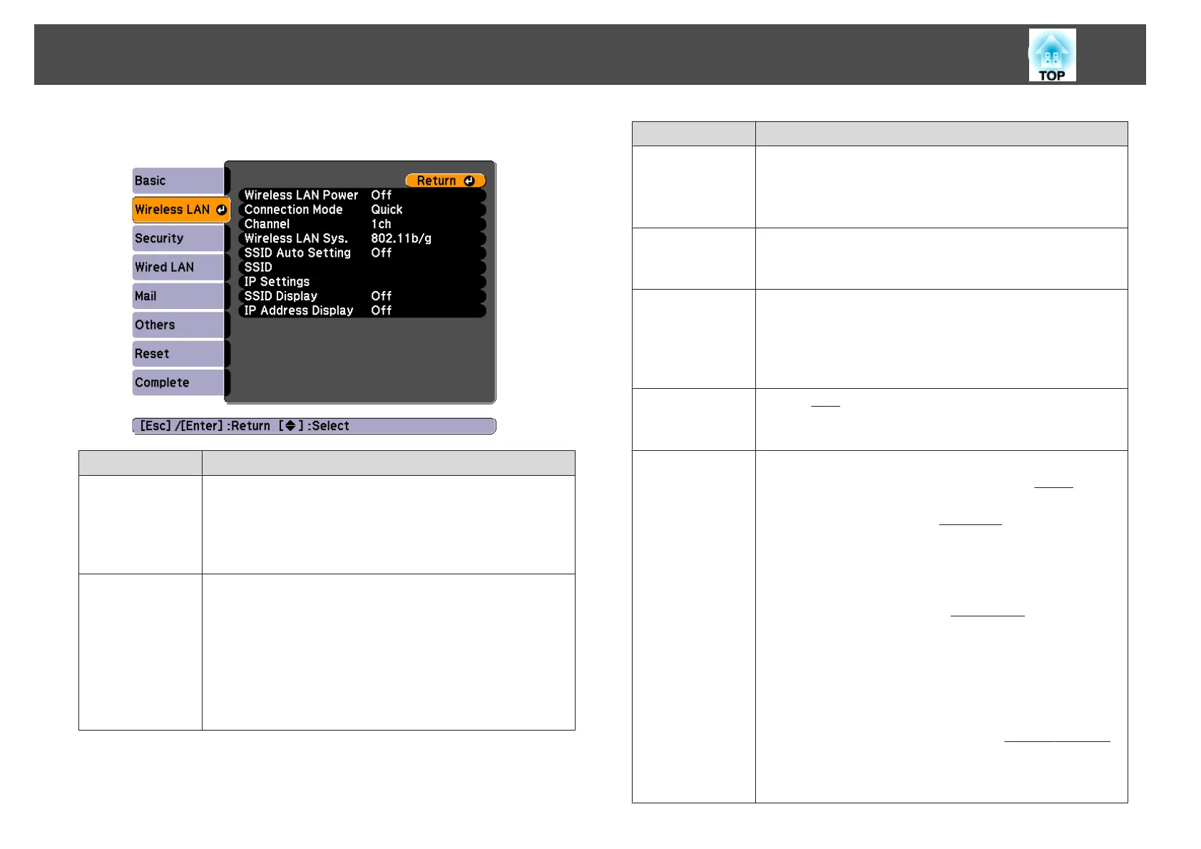 Wireless LAN menu
