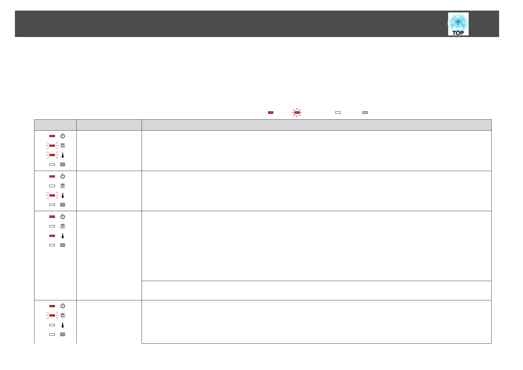 : Lit : Flashing : Off : Varies according to the projector status
