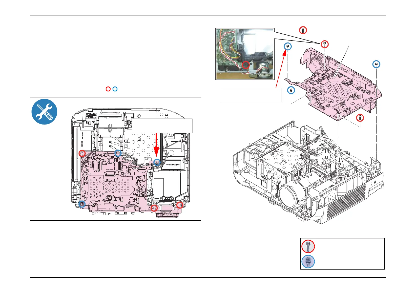 1. See Flowchart (p70) and remove all parts up to the component below from