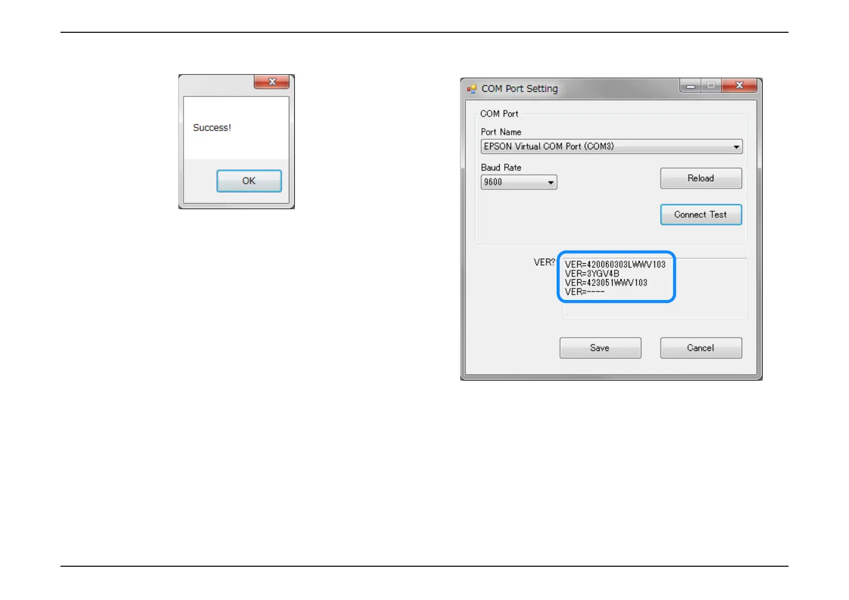 8. When the communication succeeds, [OK] is clicked. 9. Confirm the firmware version in the VER? Column.