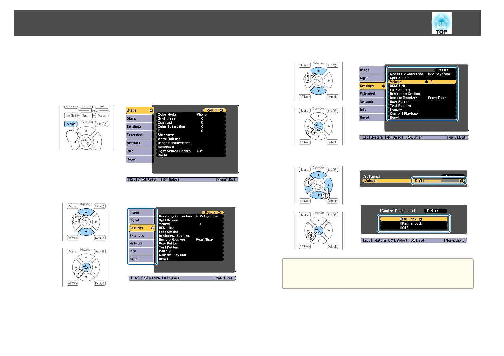 Although steps are explained using the remote control as an example, you