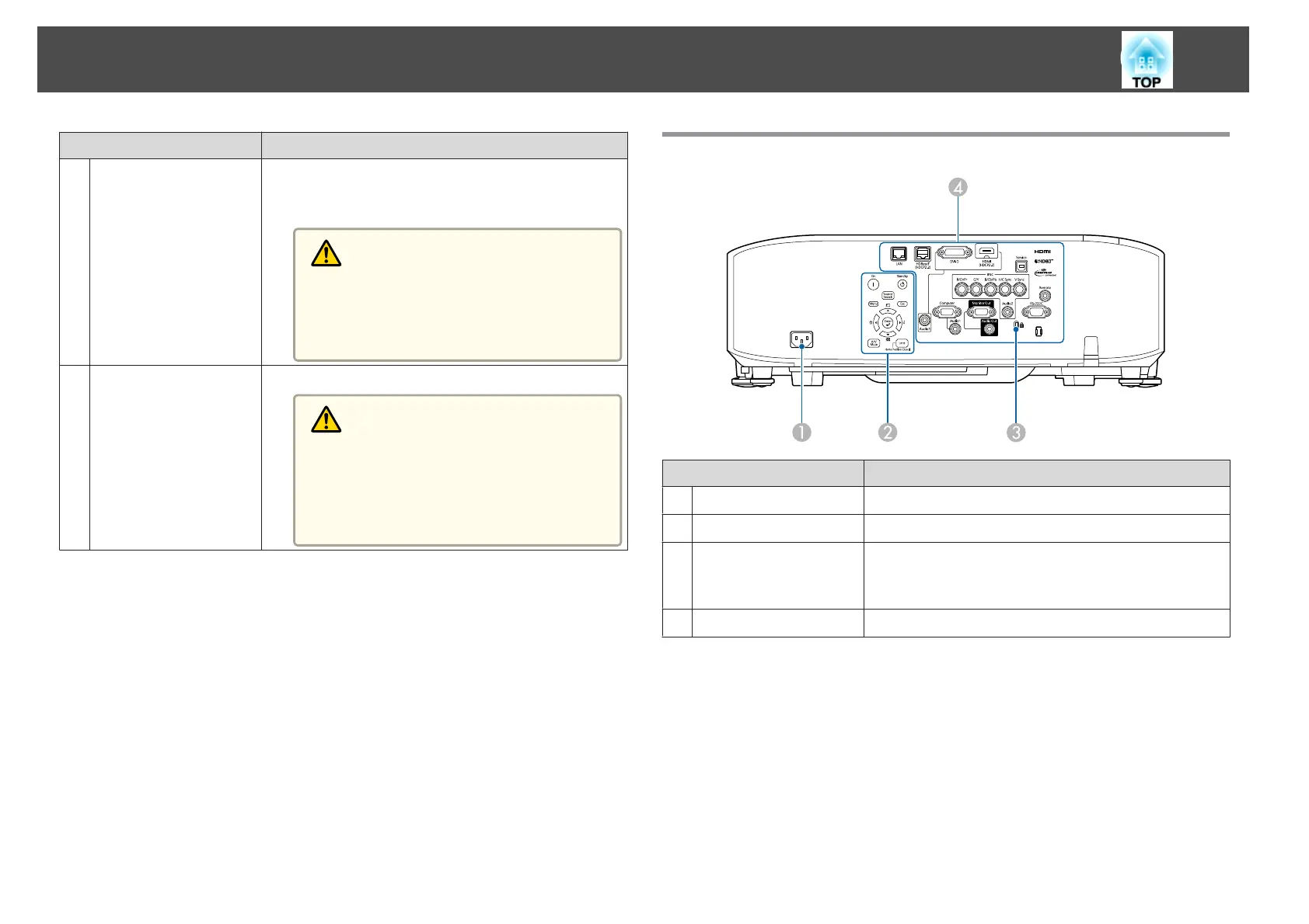 Connects the power cord to the projector.