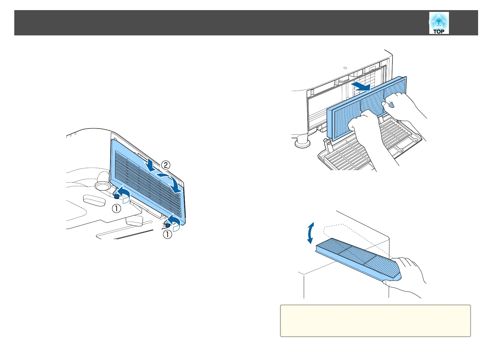 The air filter can be replaced even when the projector is suspended from a