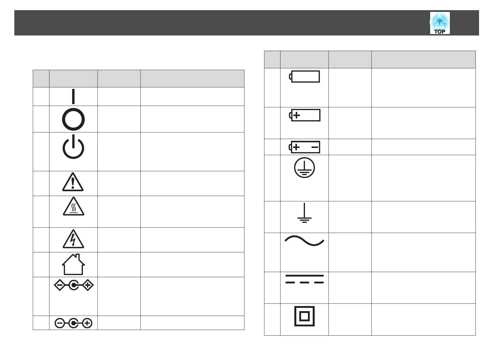 The following table lists the meaning of the safety symbols labeled on the