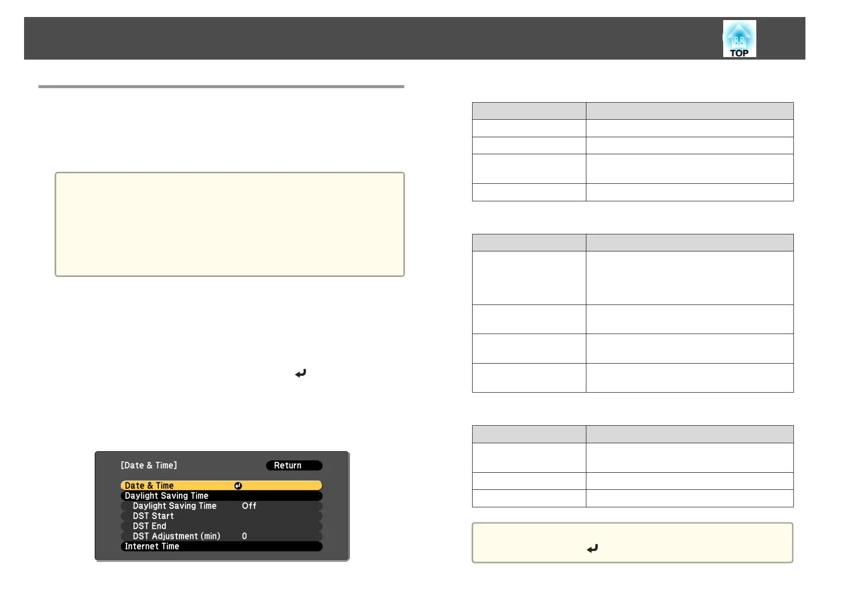 You can set the time for the projector. The set time is used for the schedule