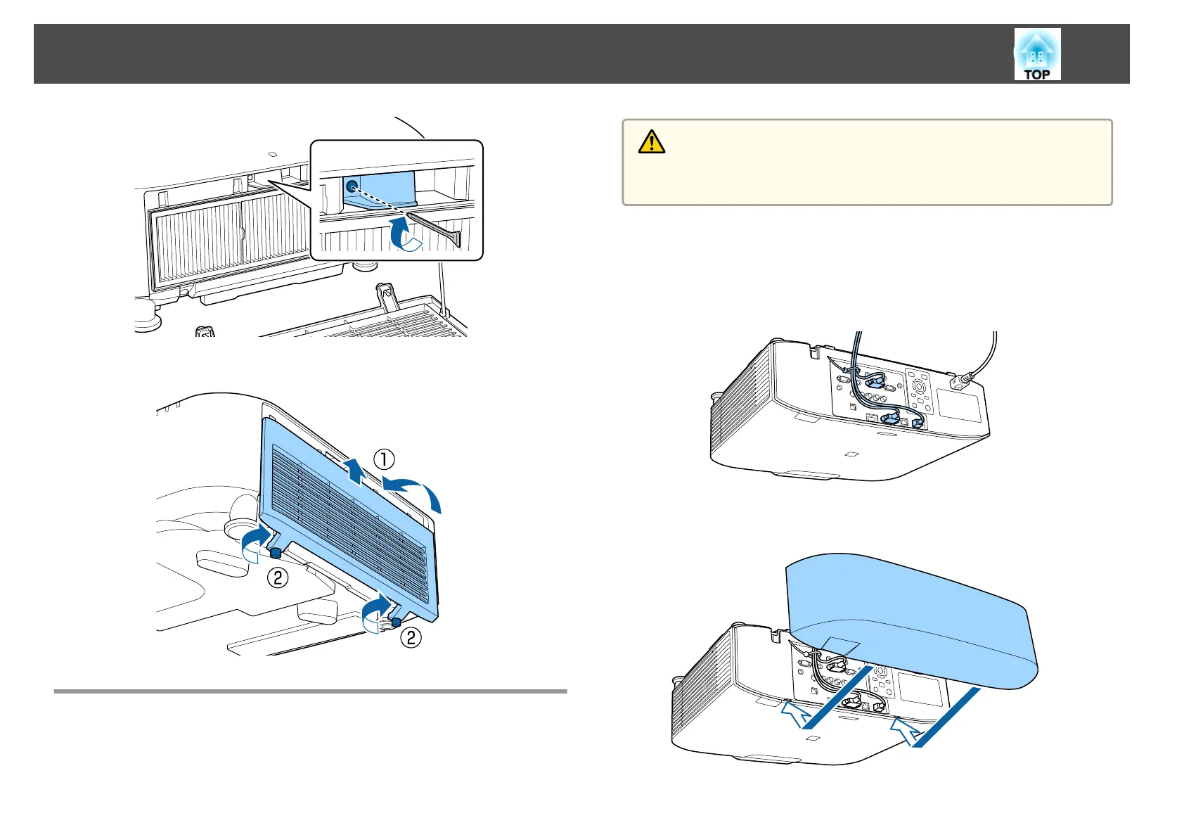 Attach the cable cover to the projector by routing the cables