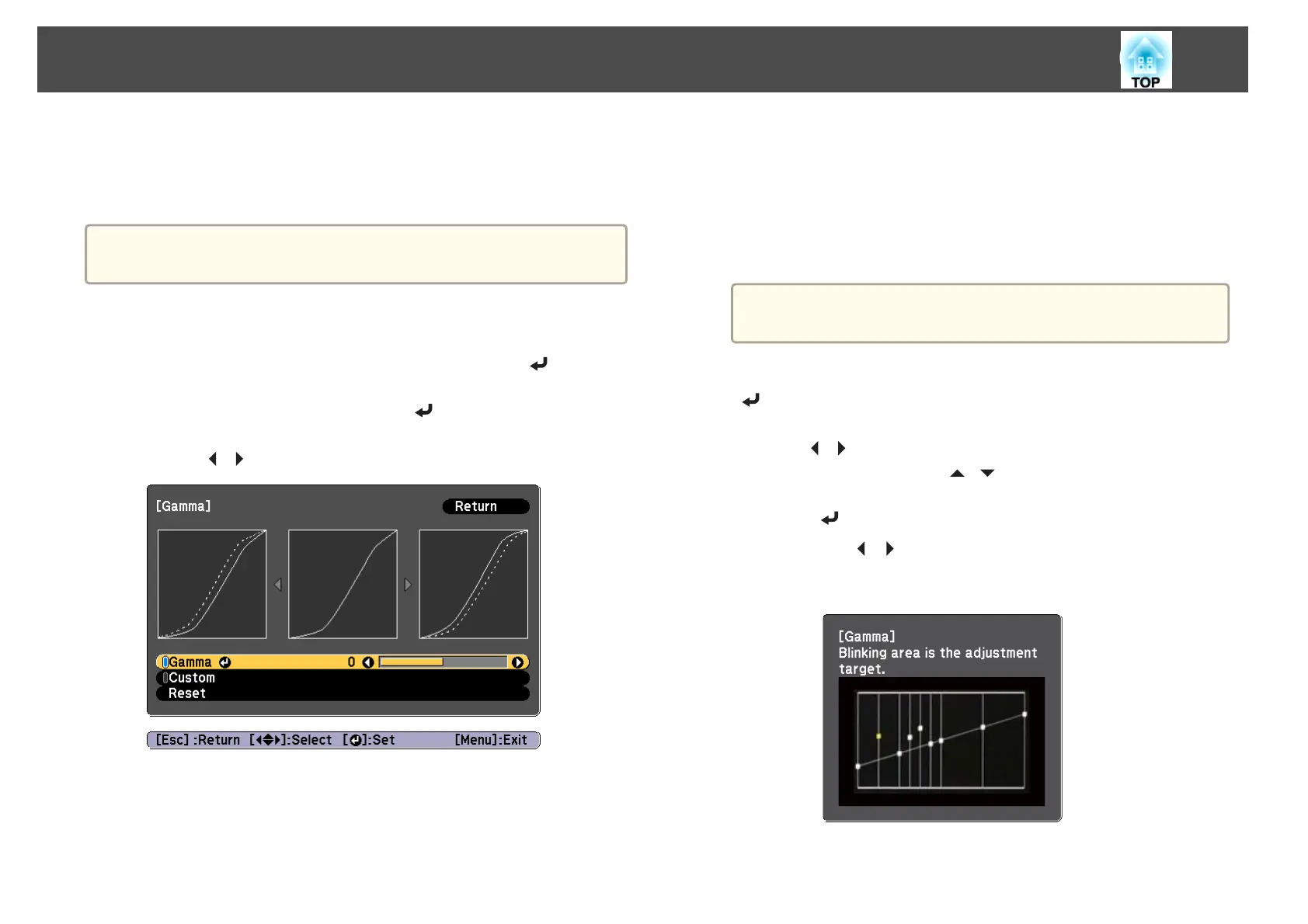 Adjust by projecting a still picture. Gamma cannot be adjusted