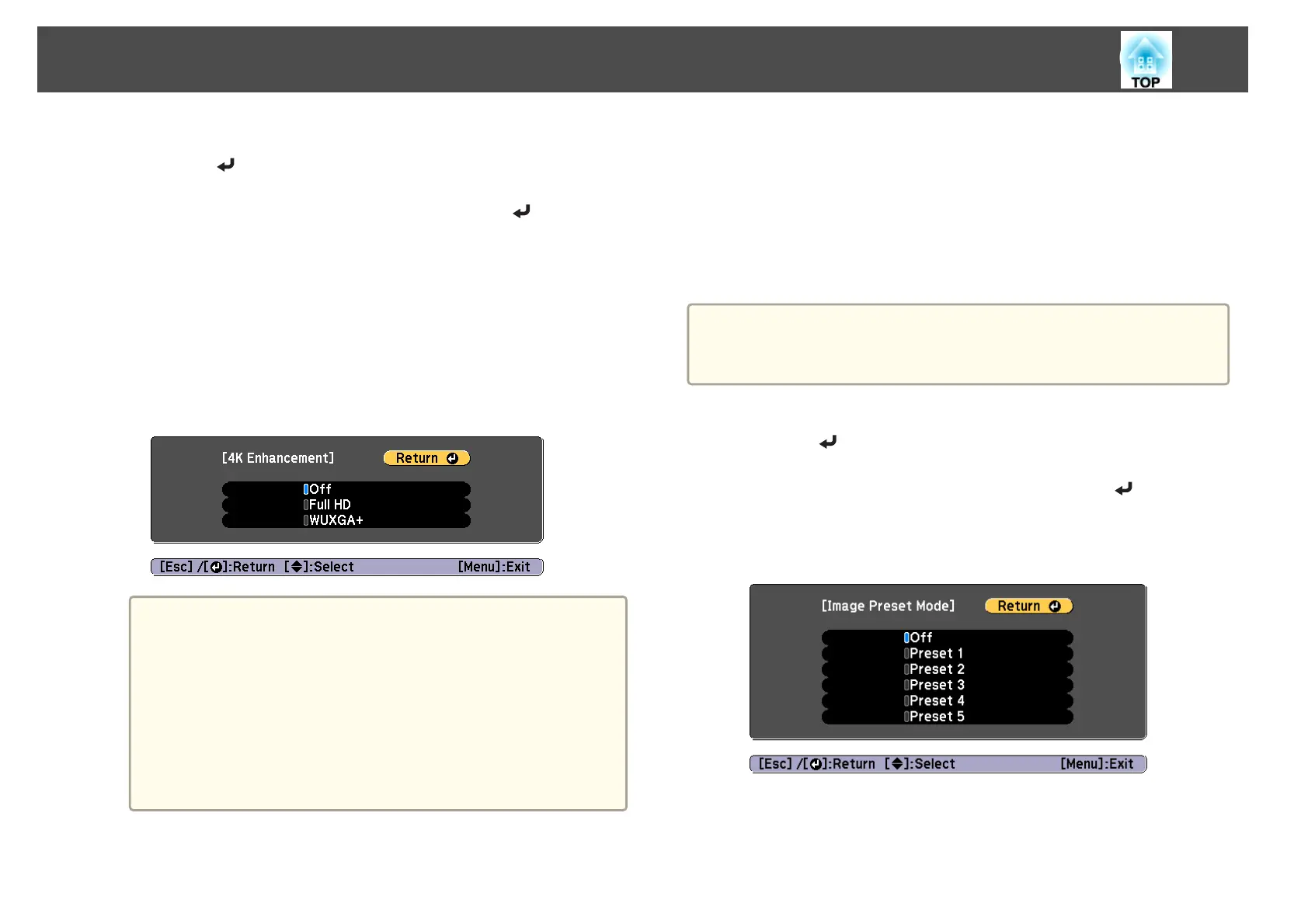 Off: Disables 4K Enhancement. If a signal that exceeds the panel
