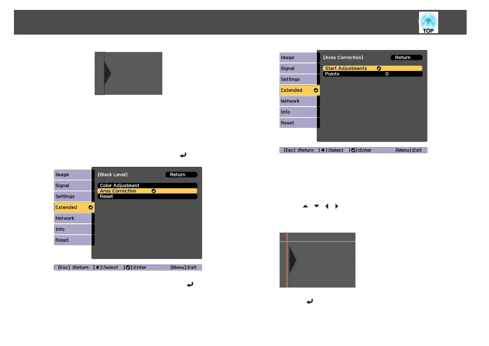 Select Area Correction, and then press the [ ] button.