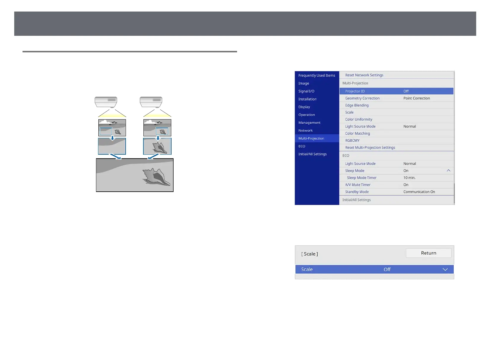 Press the [Menu] button, select the Multi-Projection menu, and press