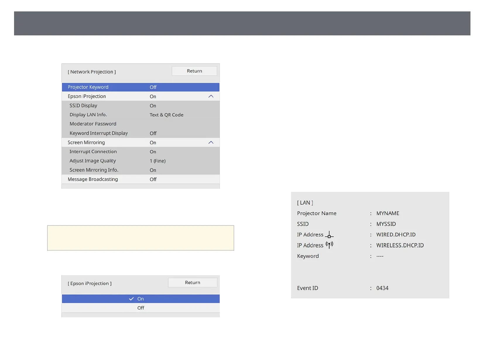 projector keyword on the projected image when accessing the