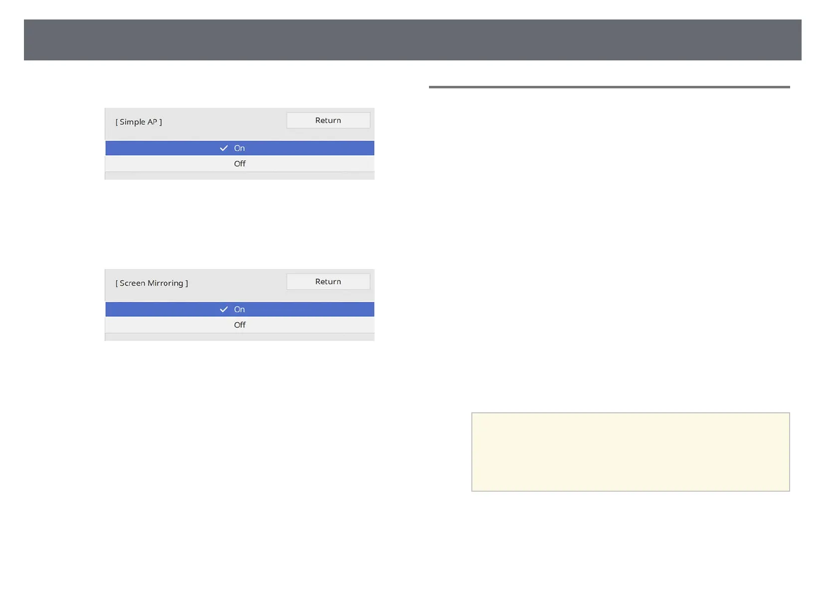 Select the Screen Mirroring setting on your projector as necessary.