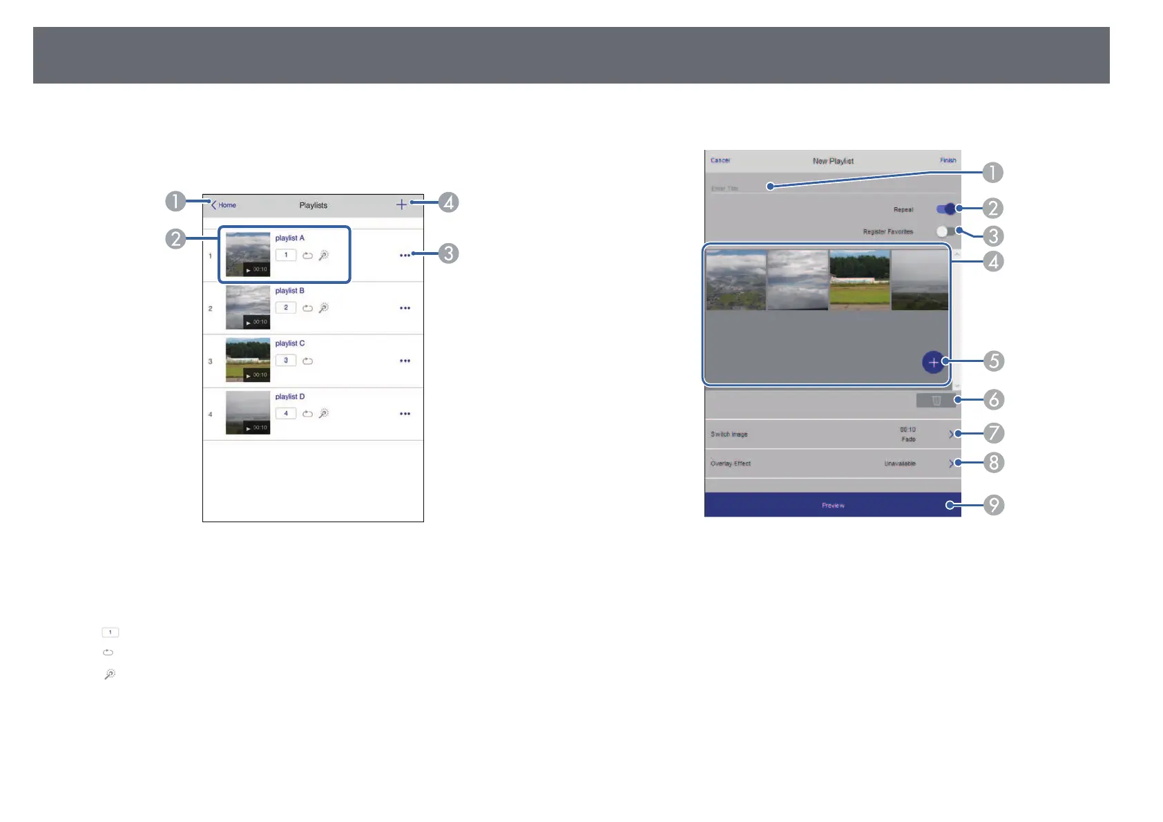 The icons indicate the playlist settings.