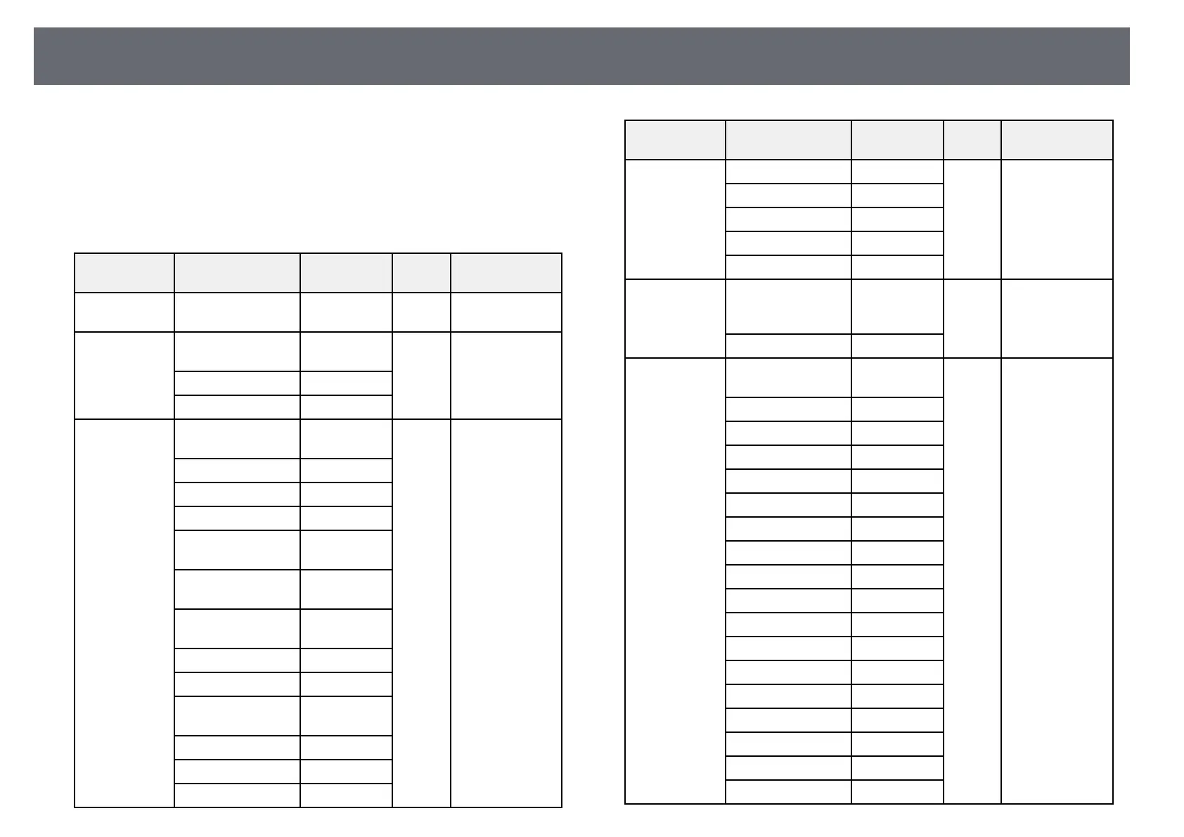 The following table lists the channel definitions used to control the projector