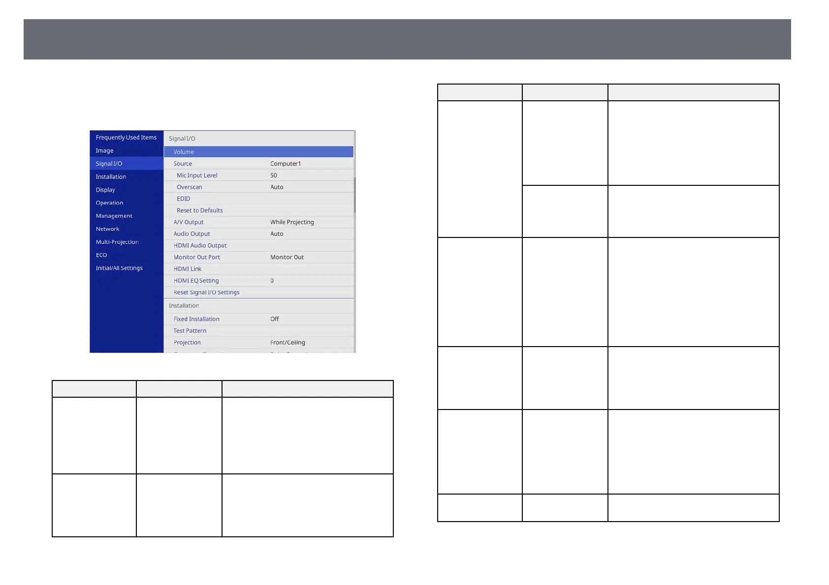Input Signal Settings - Signal I/O Menu