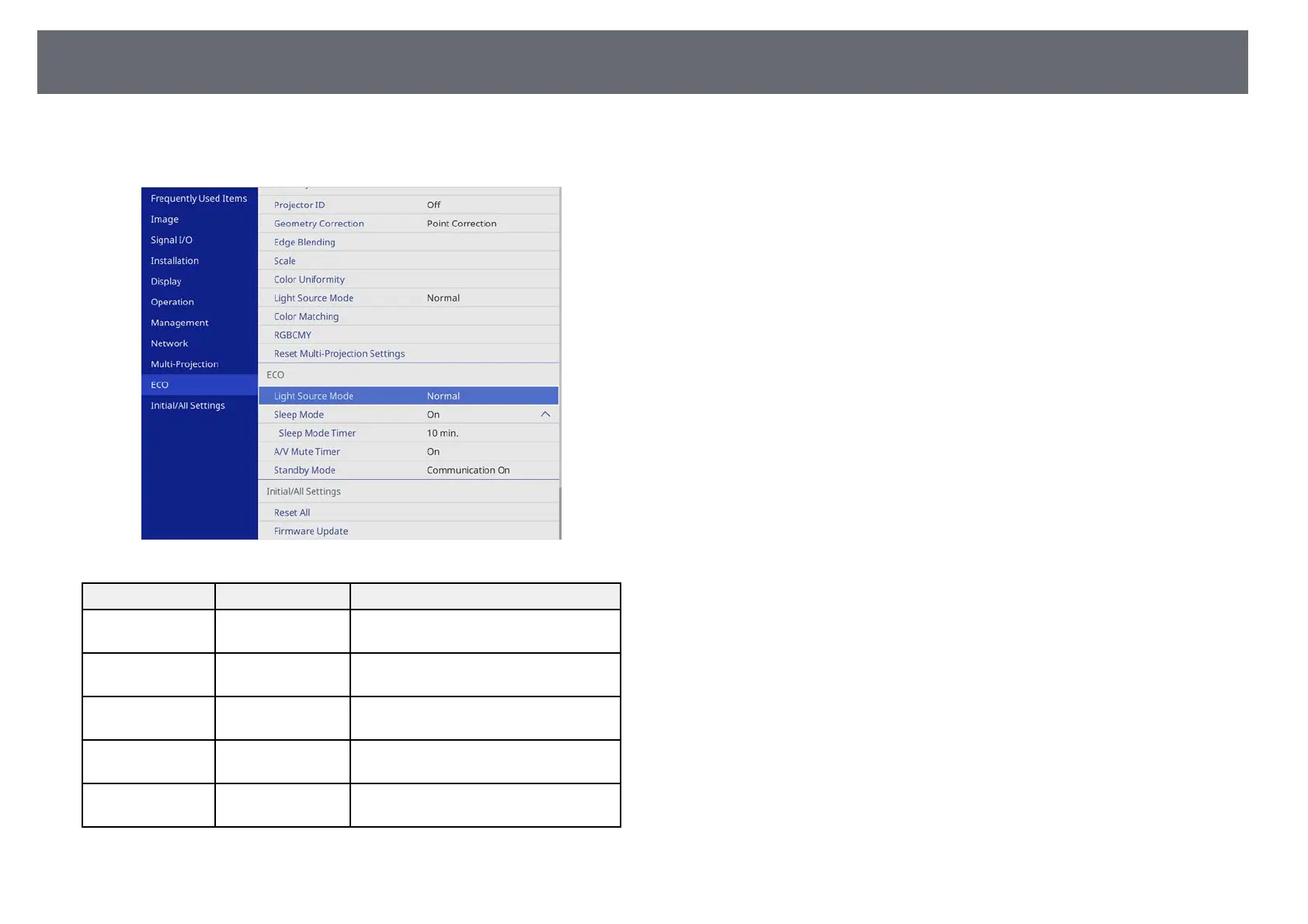 Projector Setup Settings - ECO Menu