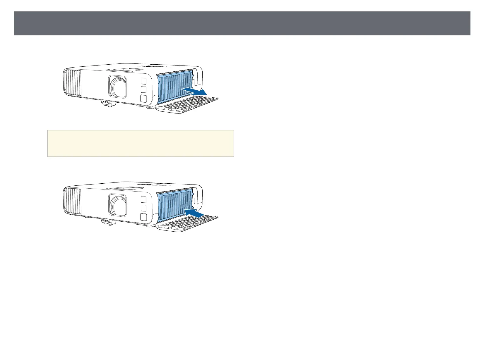 Place the new air filter in the projector as shown.