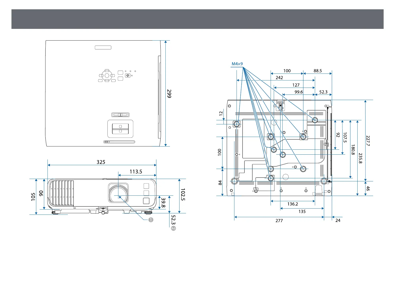 Epson EB‑L255F - External Dimensions