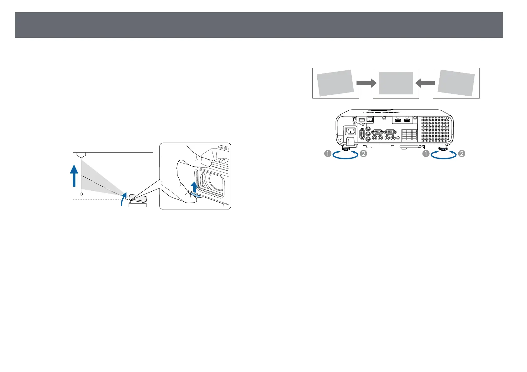 If the image is tilted, rotate the rear feet to adjust their height.