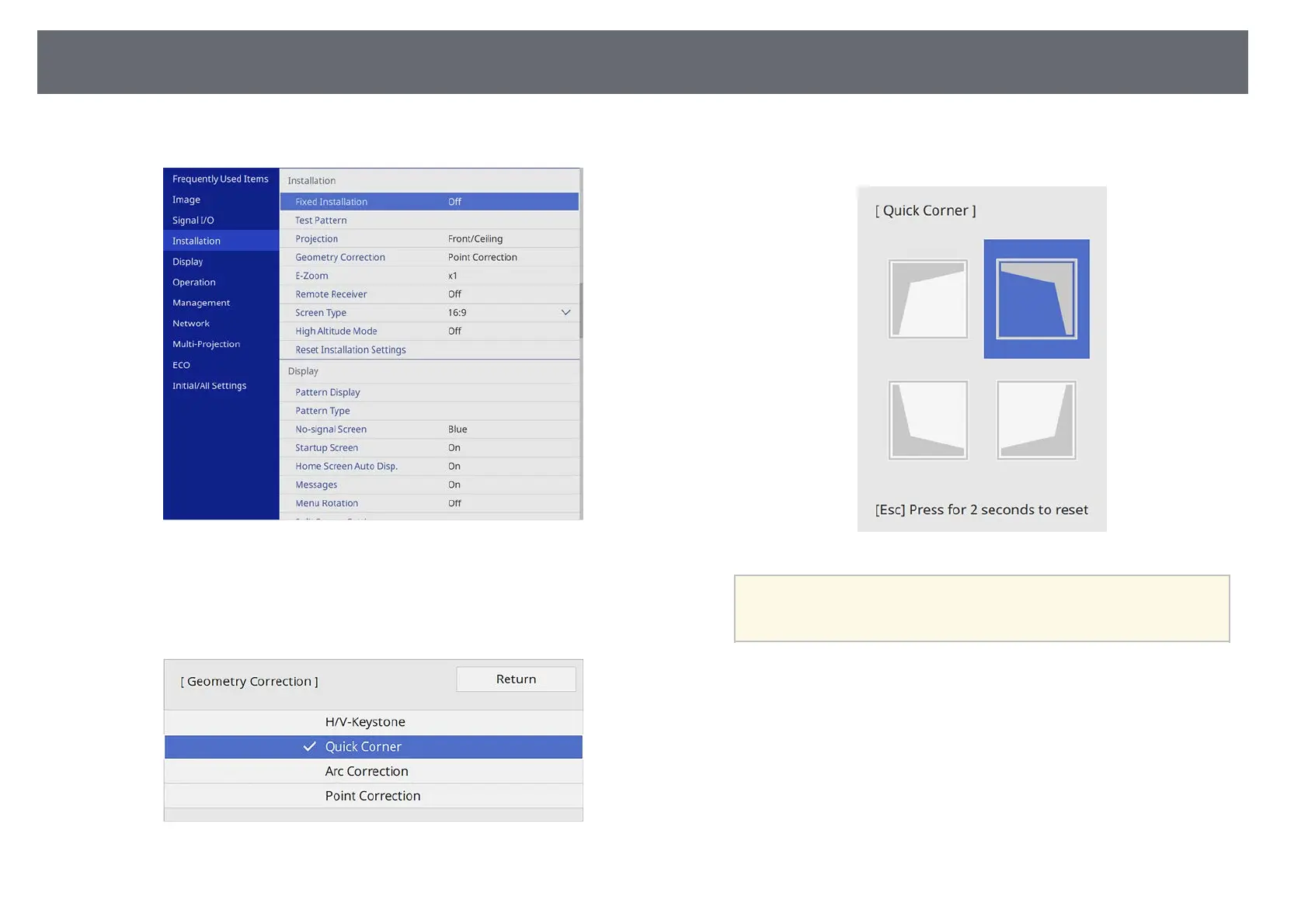 Select Quick Corner and press [Enter]. Then press [Enter] again if