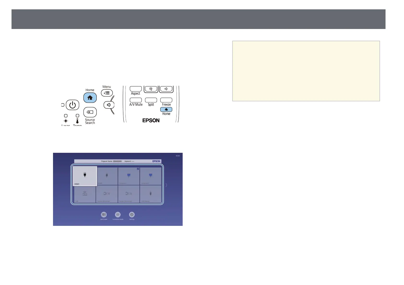 • Press the [Home] button on the control panel or remote control.