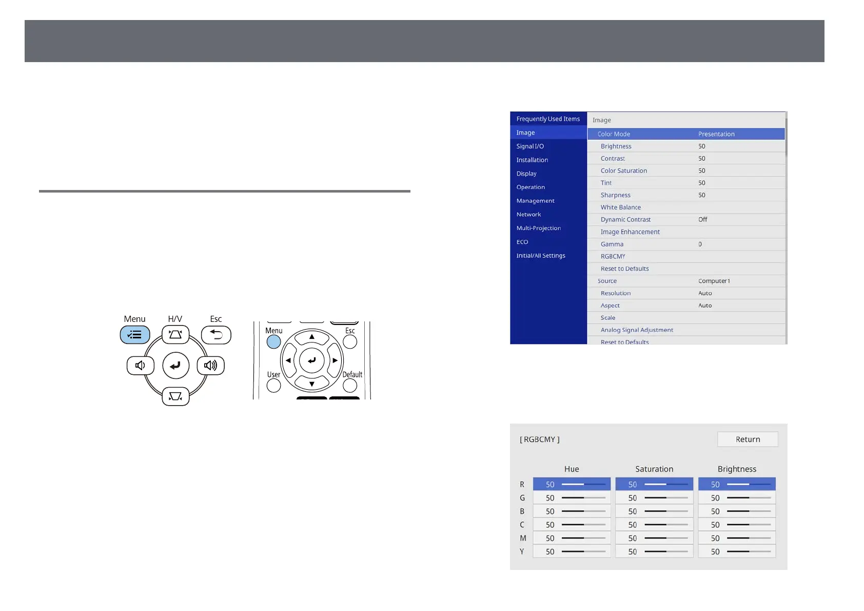 • "Adjusting the Hue, Saturation, and Brightness" p.71