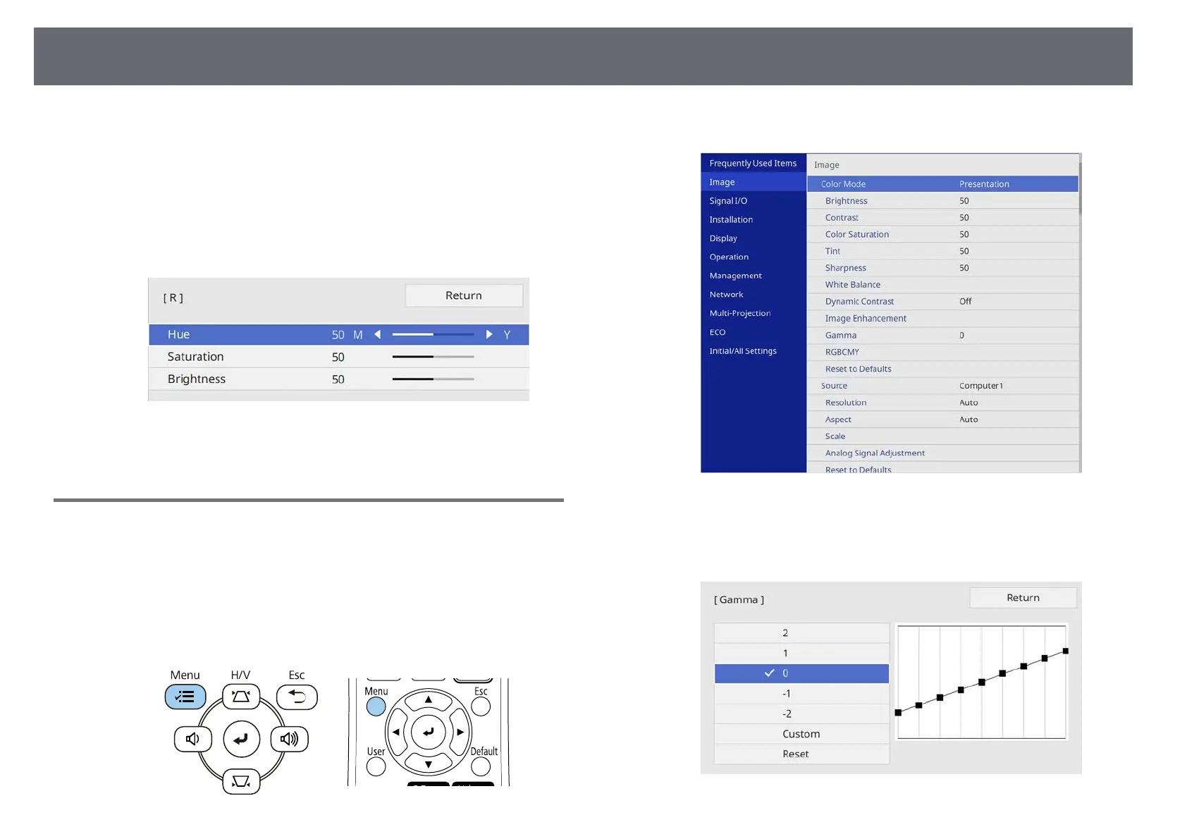 different image sources by adjusting the Gamma setting.
