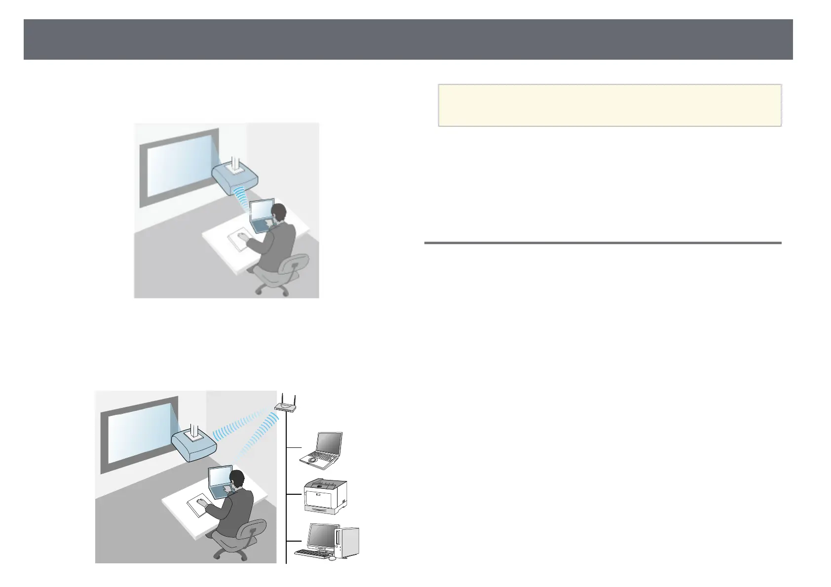 iProjection software, using Screen Mirroring, or using the optional wireless