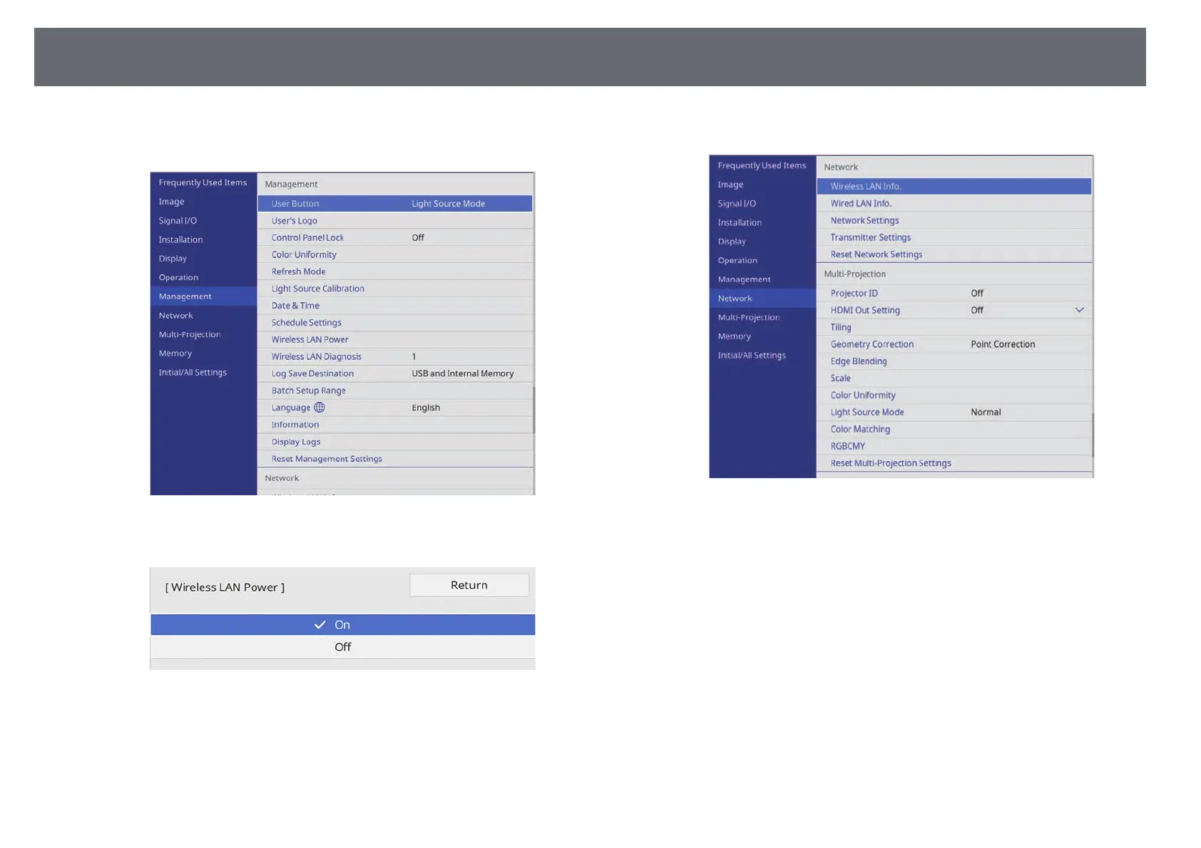 • For infrastructure mode, set the Simple AP setting to Off and go to