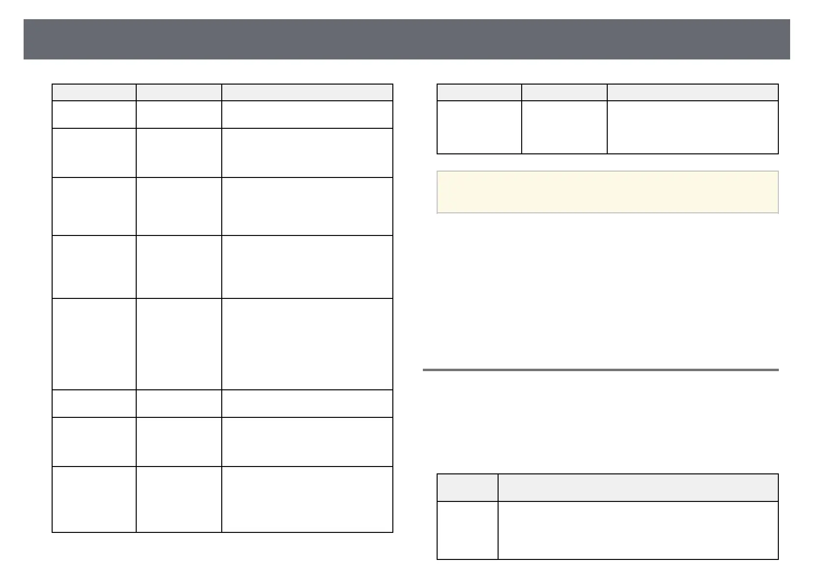 Displays information about the projector