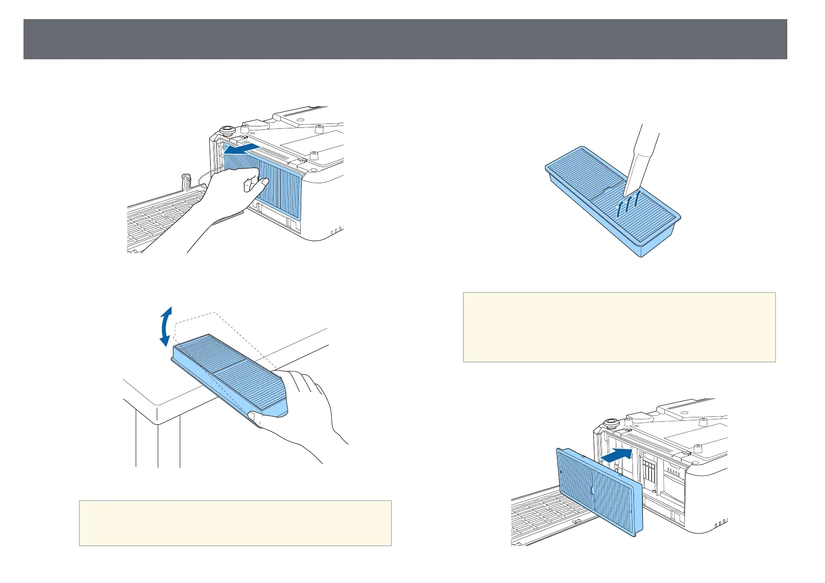 Place the air filter in the projector as shown.