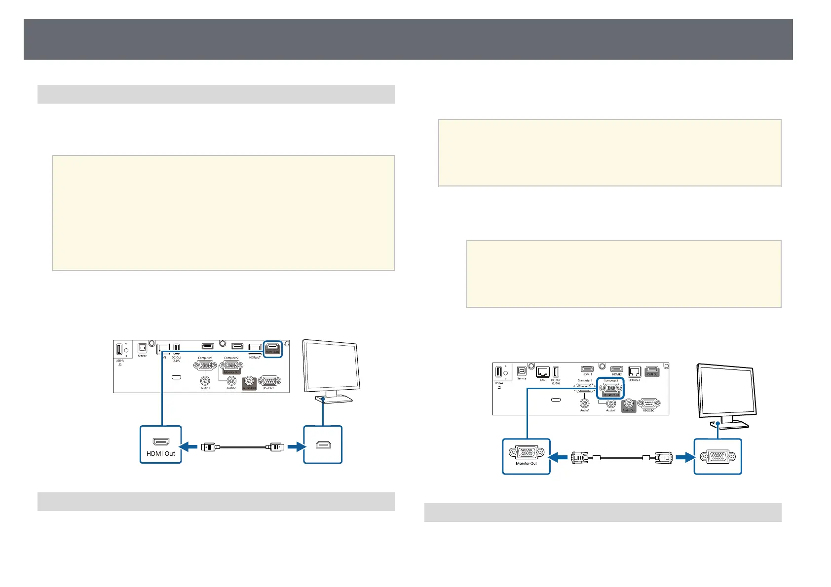 Connect the external monitor's cable to your projector's Monitor Out