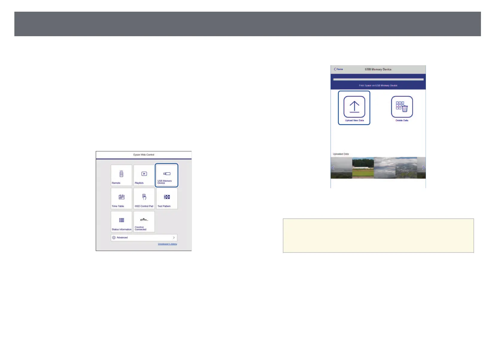 Make sure a USB flash drive is connected to the projector's USB-A port.