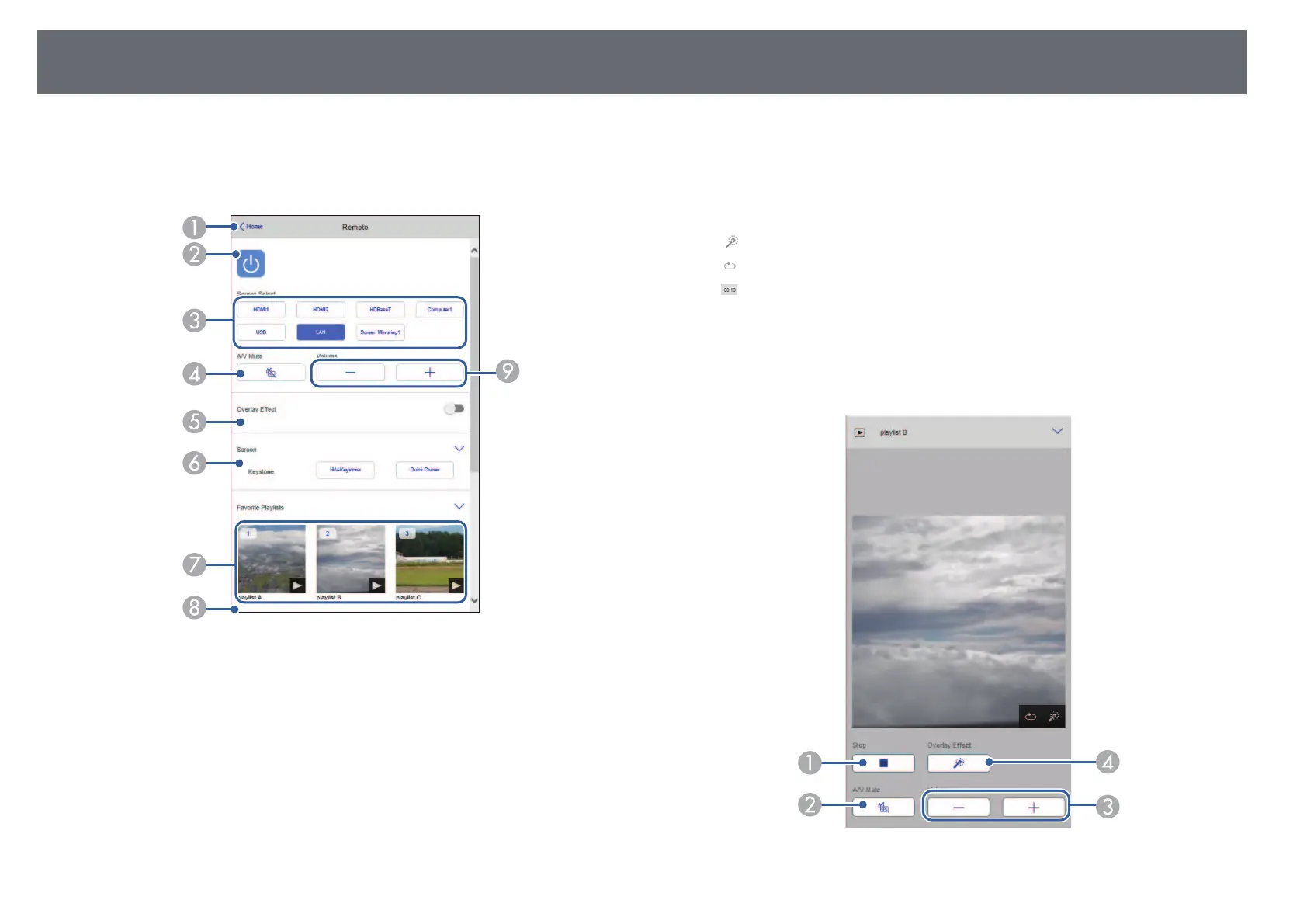 Screen displayed while projecting playlist (only in Content Playback mode)