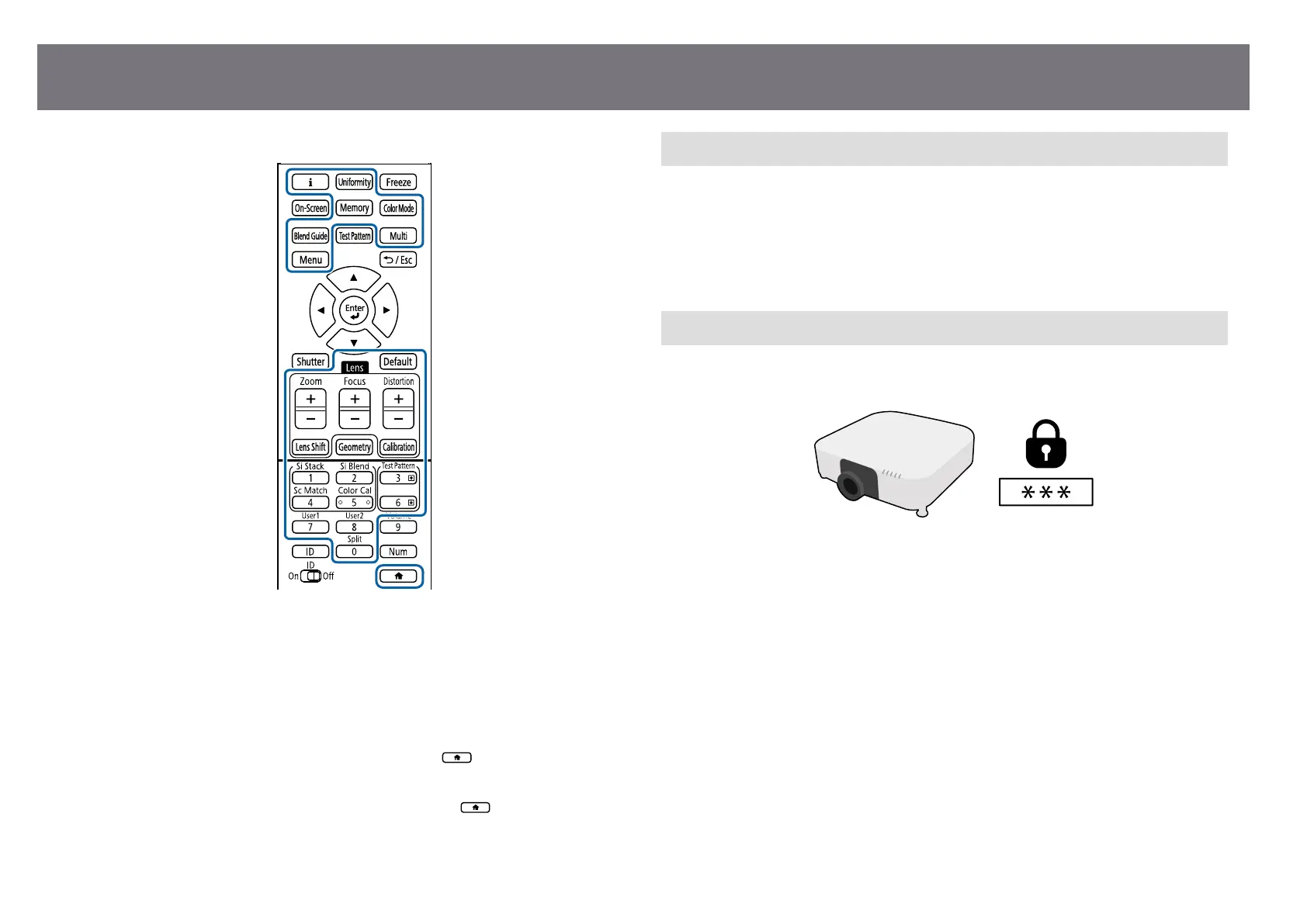 the projector, and prevent changes to the startup screen and other settings.