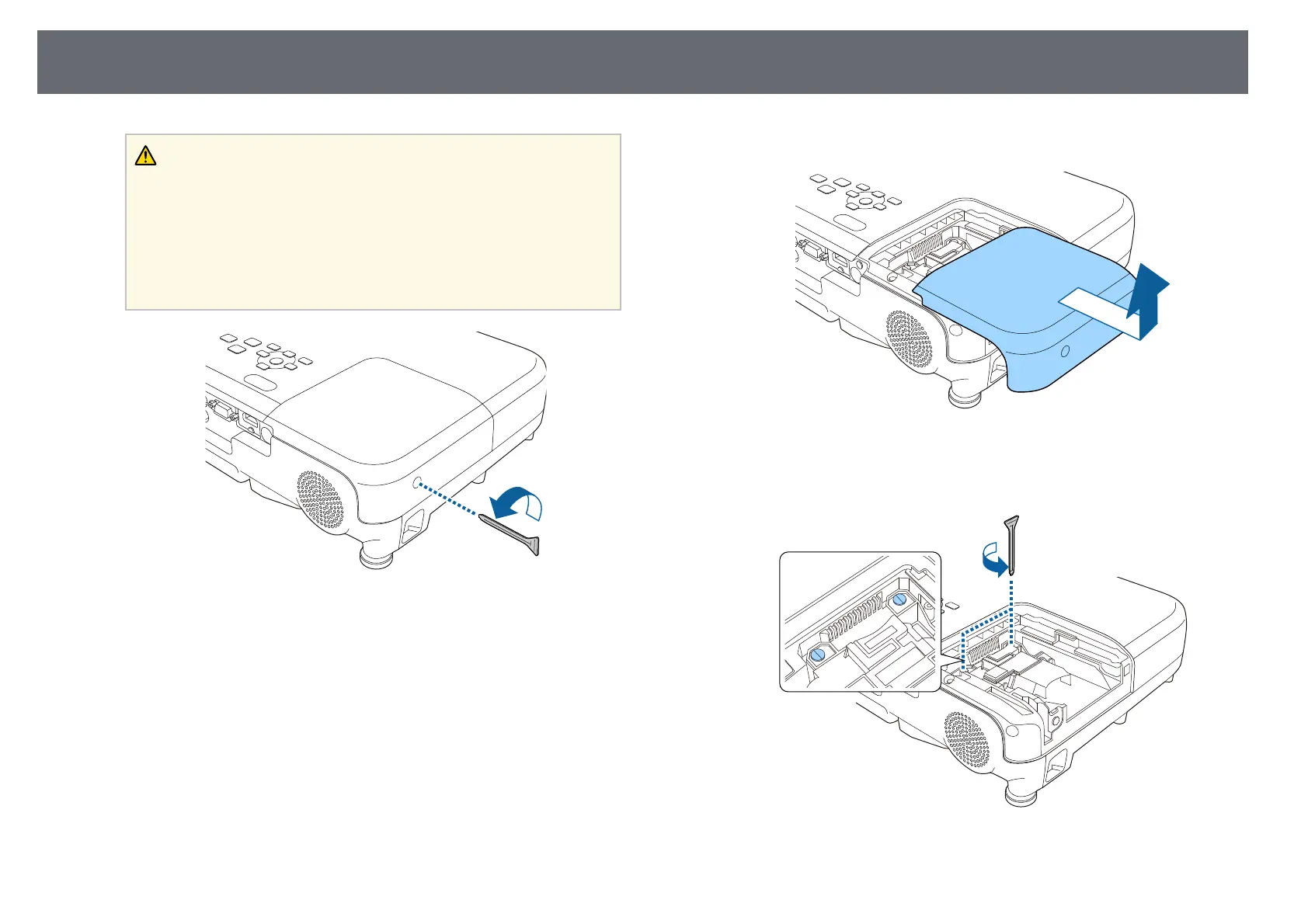 cover gently. Be careful when removing the lamp cover as shards of glass
