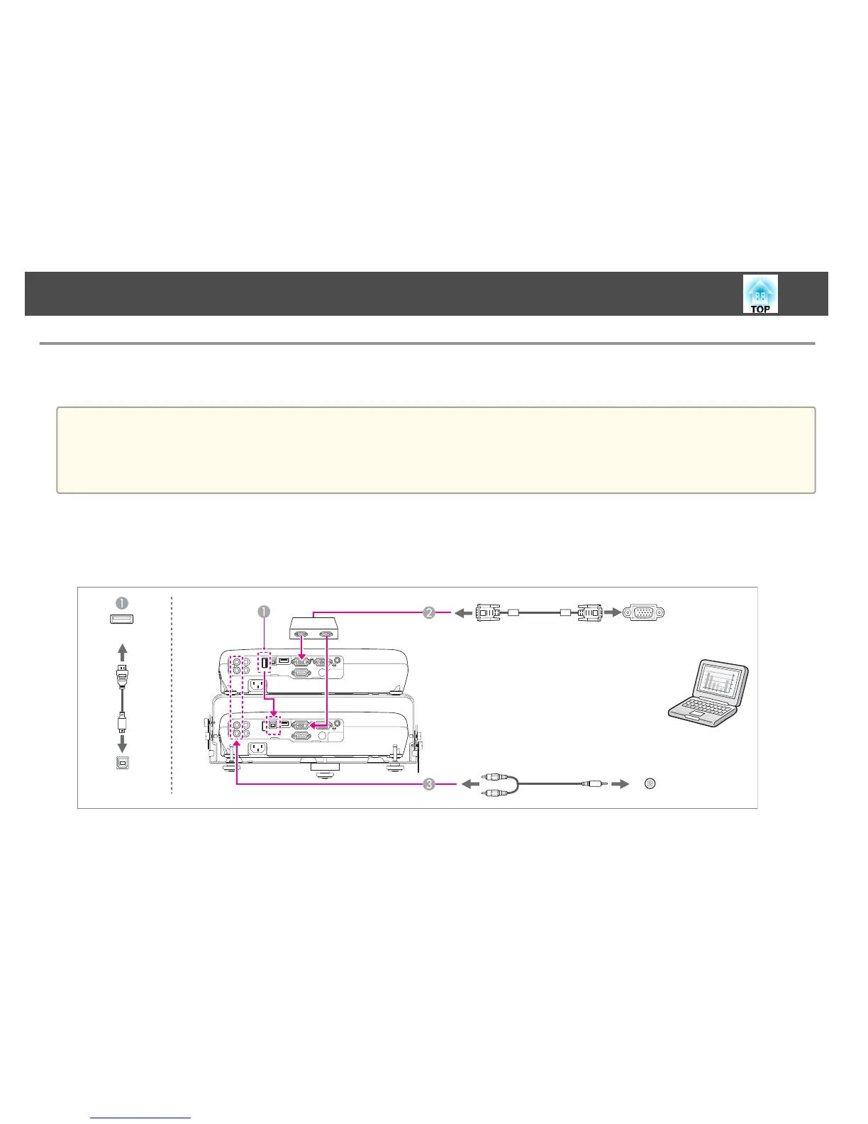 Connect the projector's Audio-L/R port (commander or receiver) to the computer's audio out port with an audio cable. Audio is output from the connected projector.