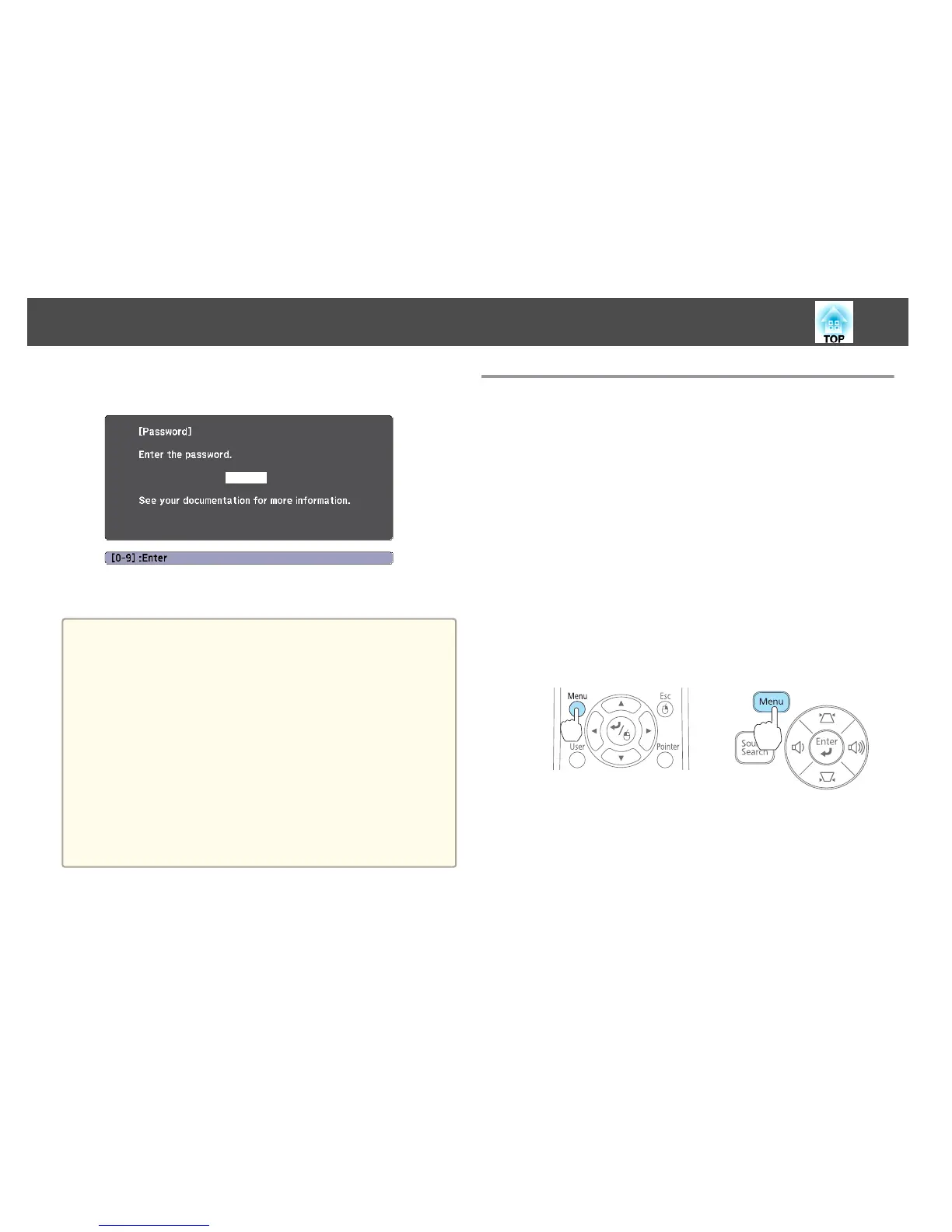 turn the projector's power back on. The projector displays the password entry