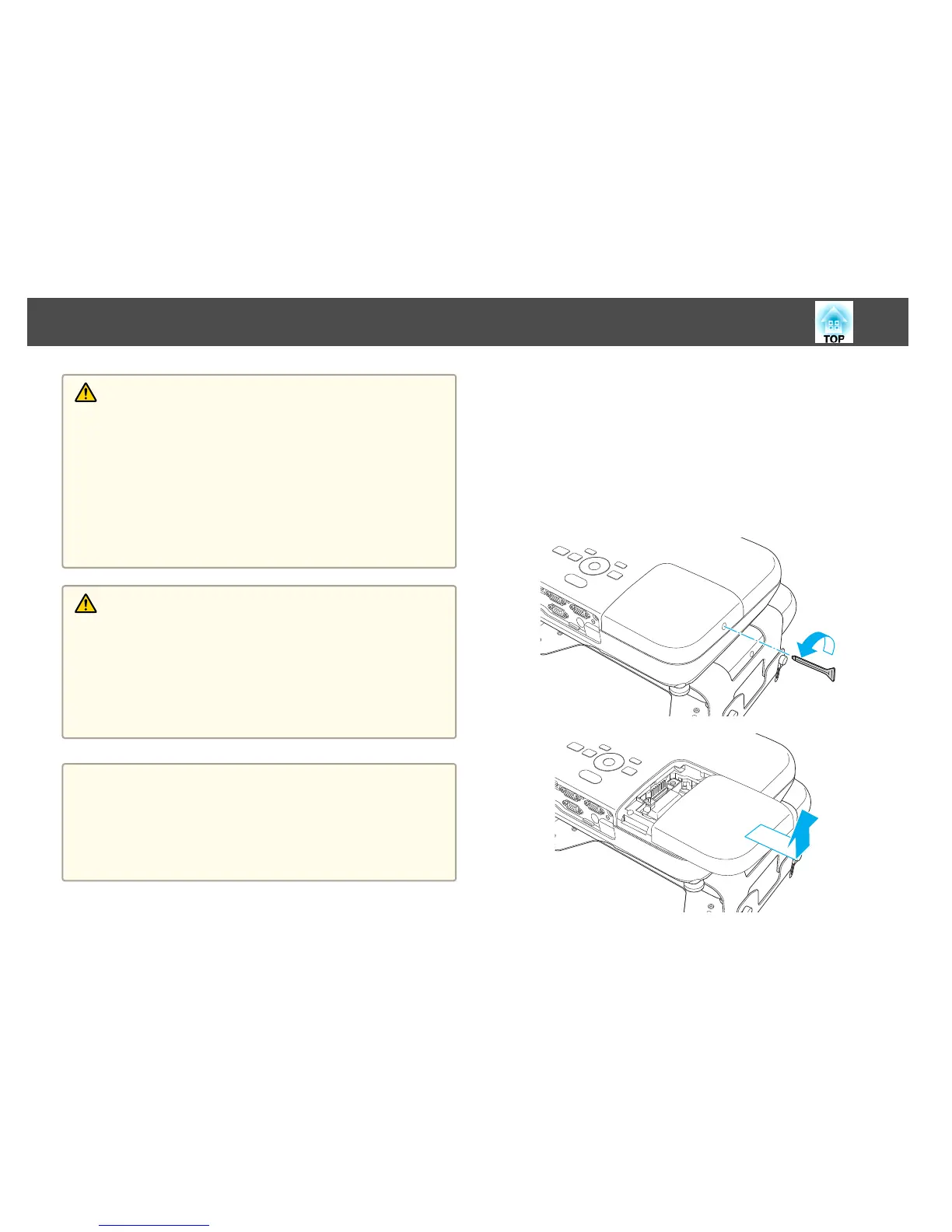 x Make sure you install the lamp securely. If the lamp cover is removed, the