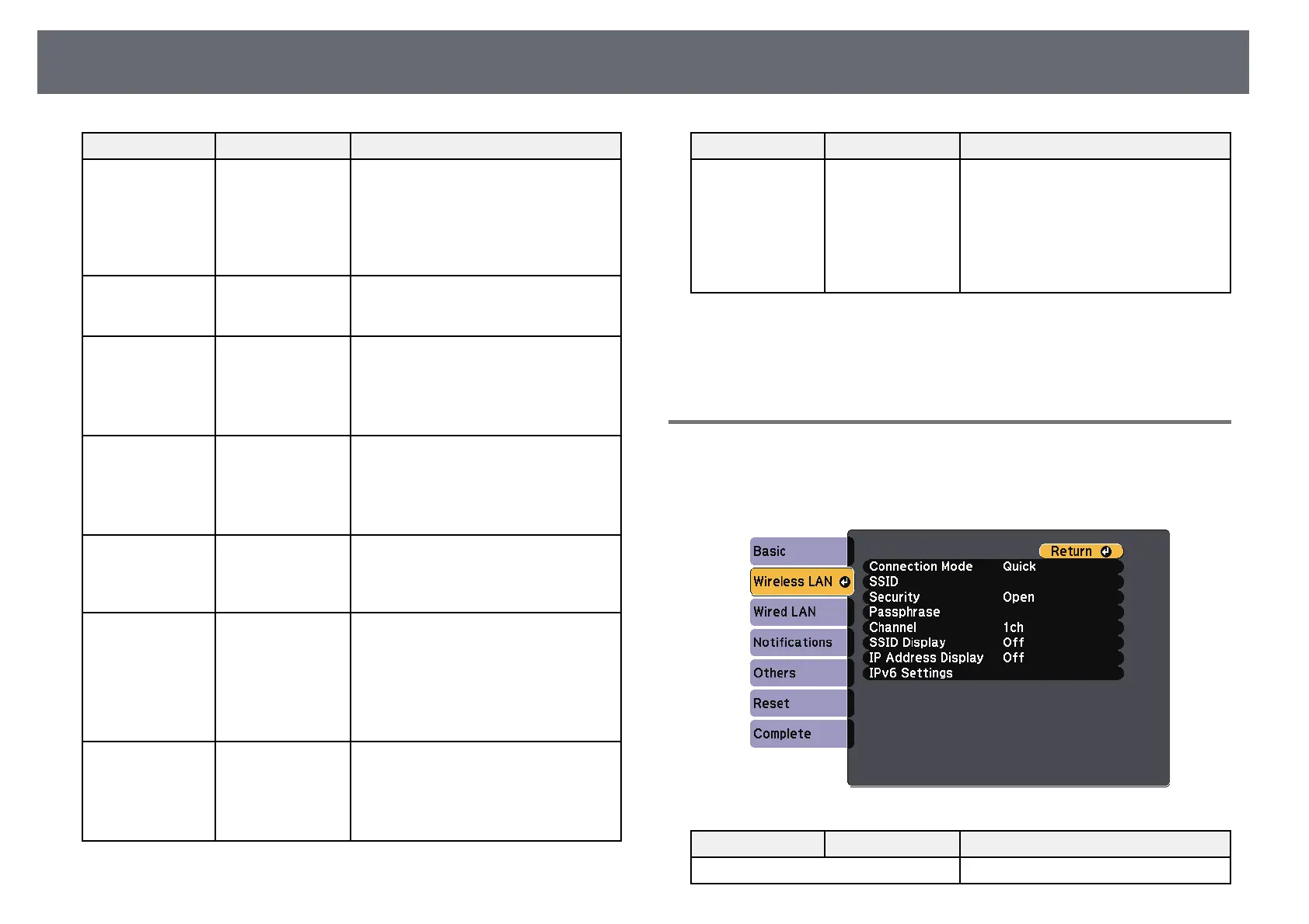 Epson EB-W39 - Network Menu - Wireless LAN Menu