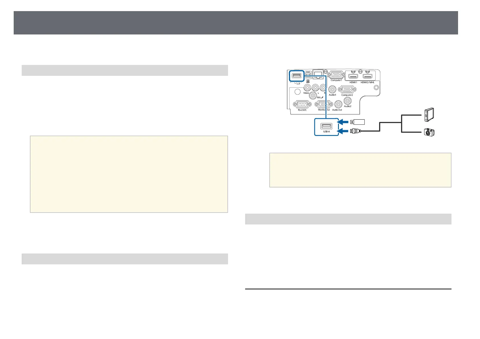 Connect the USB cable or USB flash drive to the projector's USB-A port