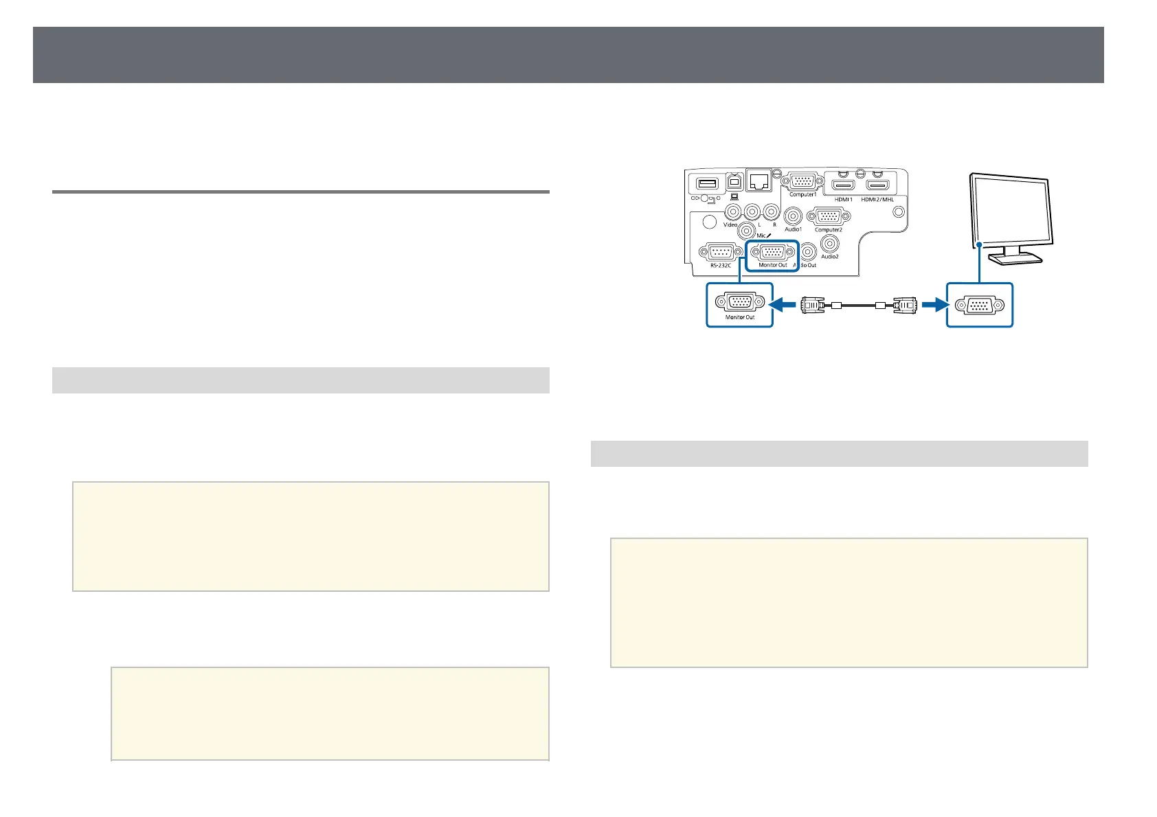 Connect the external monitor's cable to your projector's Monitor Out