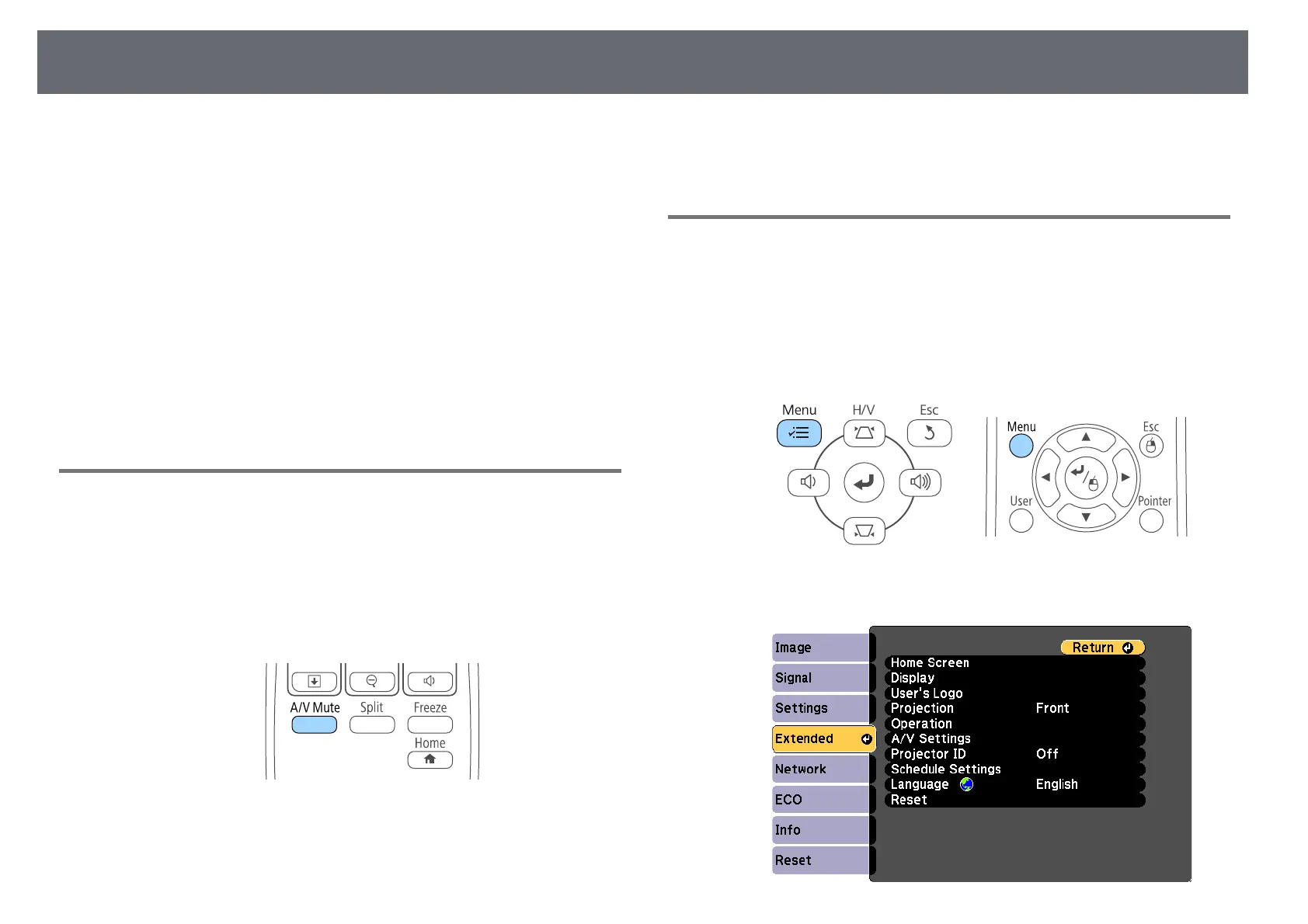Hold down the [A/V Mute] button on the remote control for 5 seconds.
