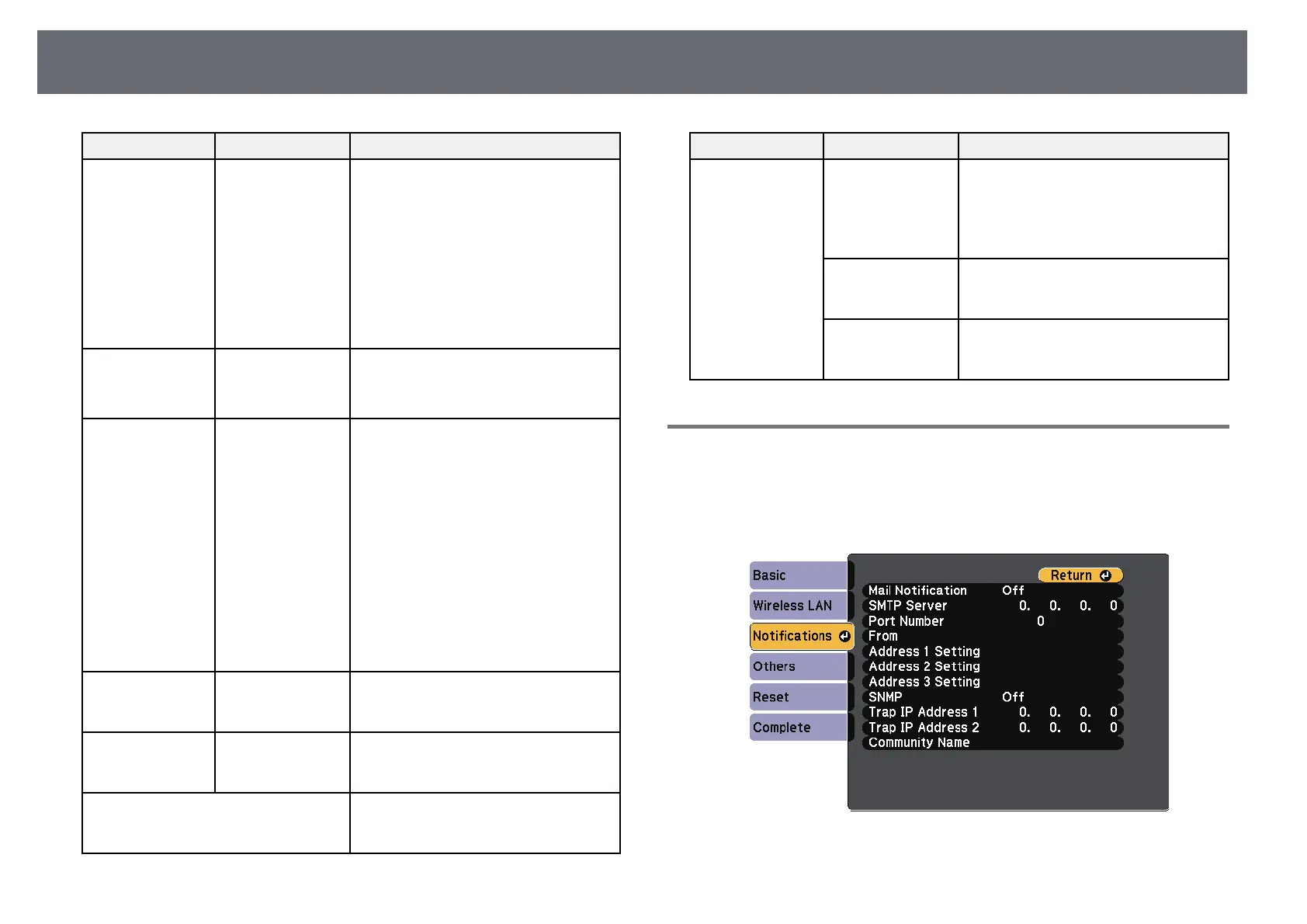 Epson EB-X41 - Network Menu - Notifications Menu